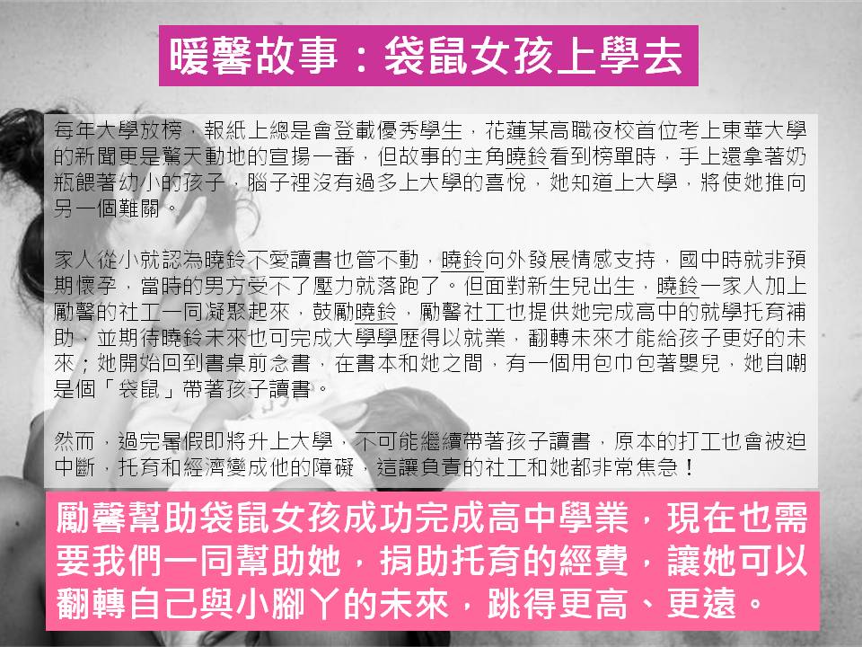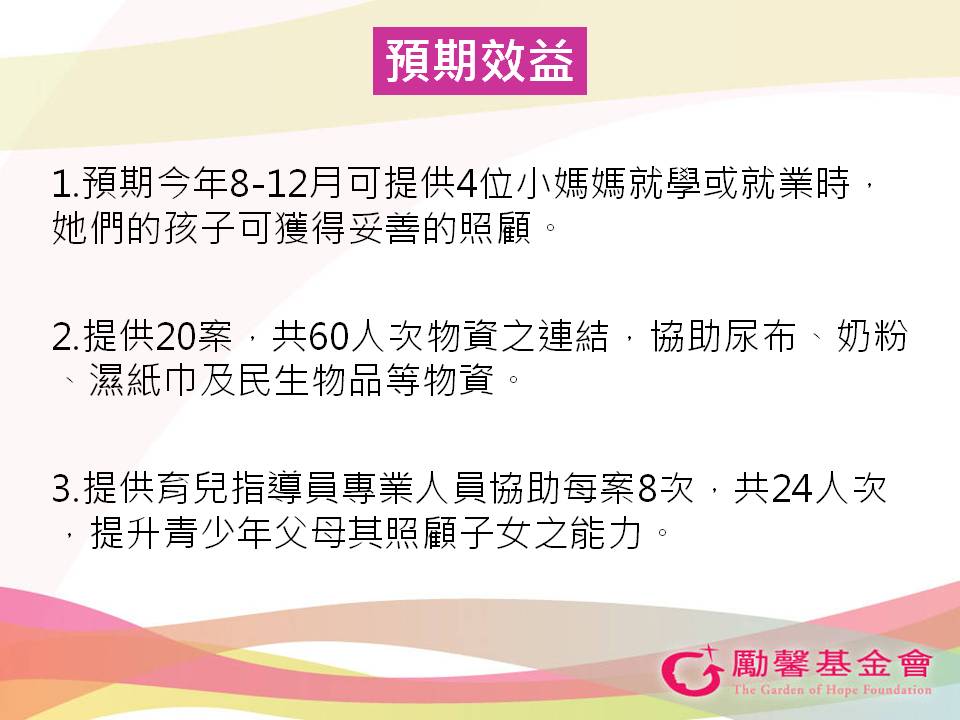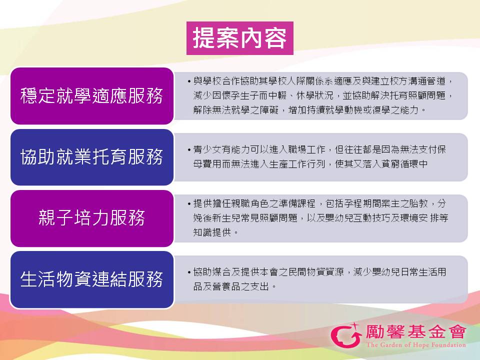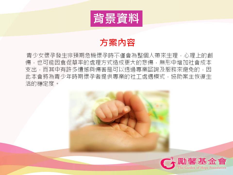 勵馨基金會提案「用馨呵護我的寶貝-青少女懷孕方案」