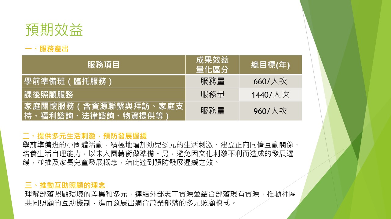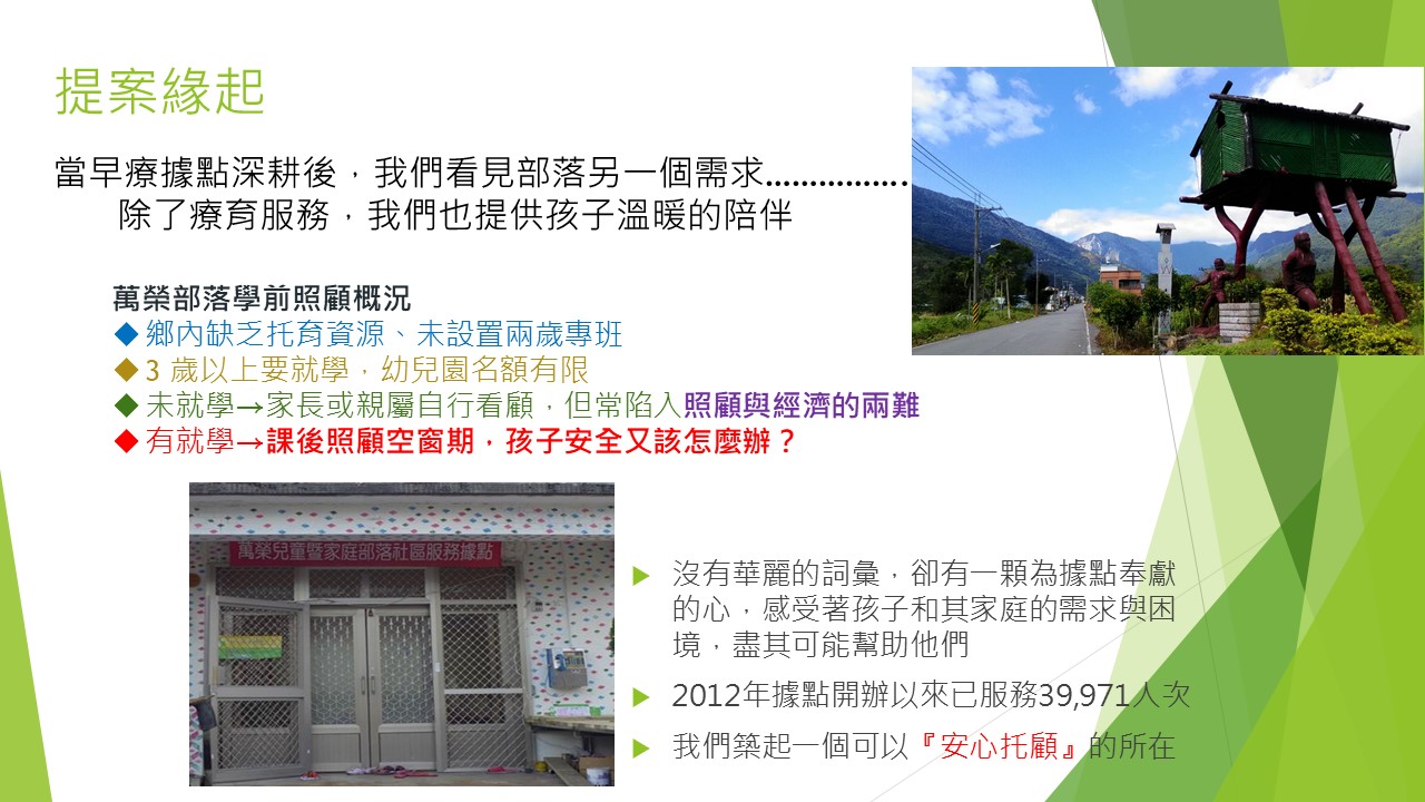 入選單位三:台灣兒童發展早期療育協會「萬榮部落社區據點學前準備班及課後照顧服務計畫」