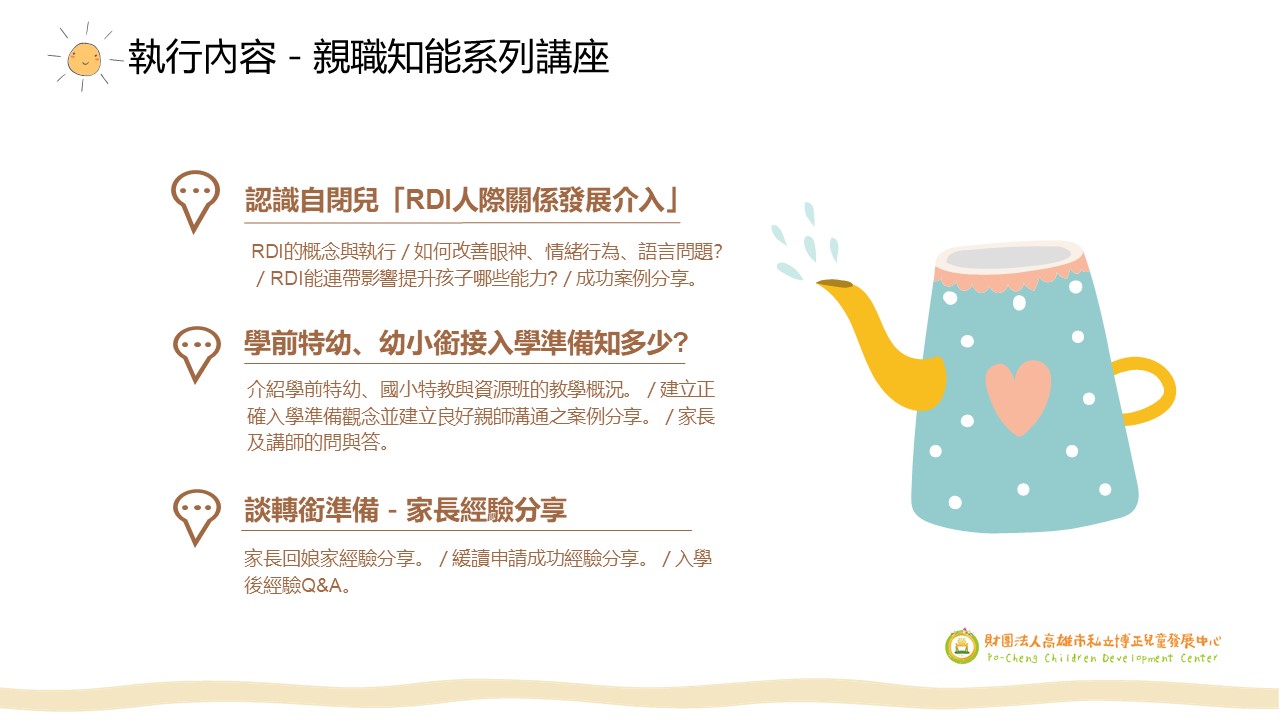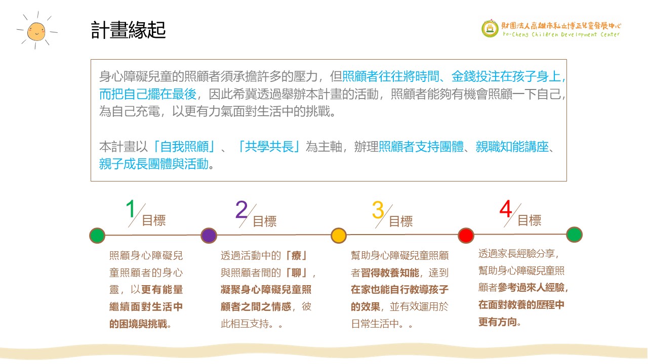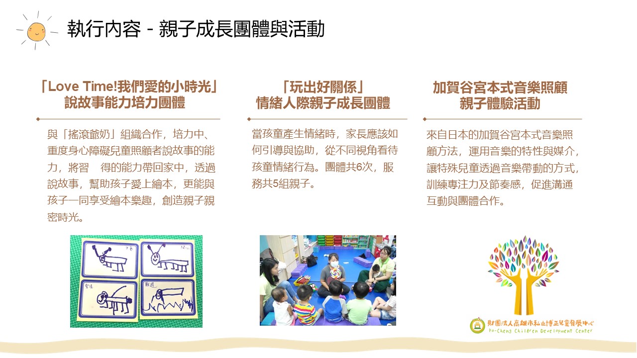 入選單位:財團法人高雄市私立博正兒童發展中心「FUN心療聊,攜手同行 」110年度身心障礙兒童家庭照顧者支持服務計畫